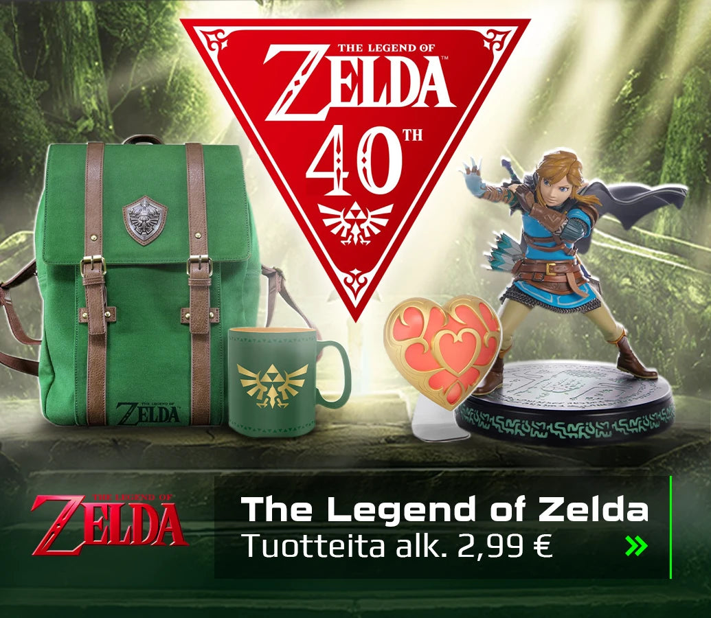 Hyrulen T-paidat, juomapullot ja lippikset odottavat sinua verkkokaupassamme. Suuntaa Linkin kanssa seikkailuun cooleimpien fanituotteiden kera. Tarjolla ovat myös Zelda-aiheiset korut, reput ja pehmolelut.