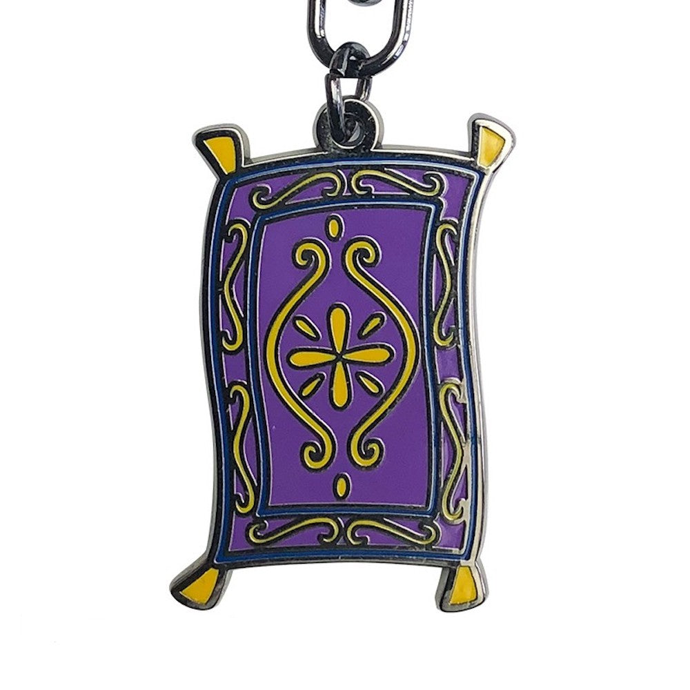 Disney-avainrengas, jossa on Aladdin elokuvan tyylikäs lentävä matto. Takaosassa teksti "Aladdin".
