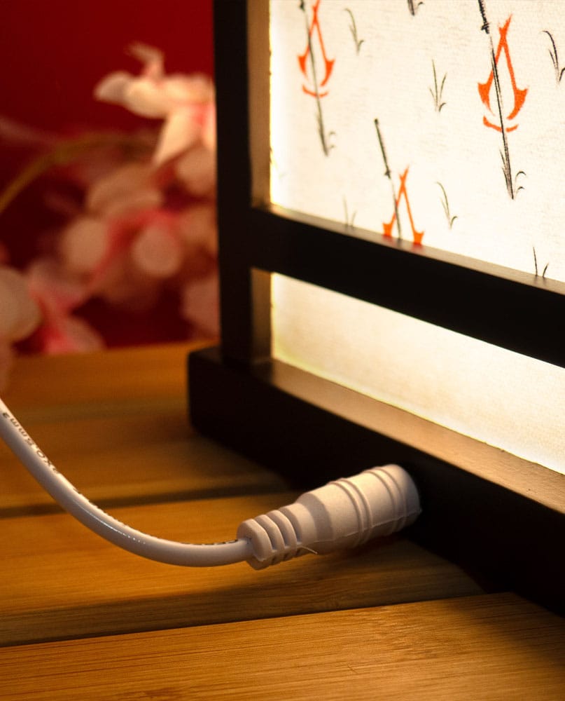 Erittäin tyylikäs, lyhdyn näköinen Assassin's Creed Shadows -valaisin, jossa näkyy päähahmot Naoe ja Yasuke. Upeat Assassin's Creed -valaisimet vangitsevat pelisarjan jännityksen ja tyylin kaikissa yksityiskohdissaan.