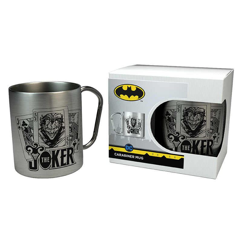 Teräksinen Batman-muki, jonka kuvassa on Lepakkomiehen arkkivihollinen Clown Prince of Crime, eli Jokeri.