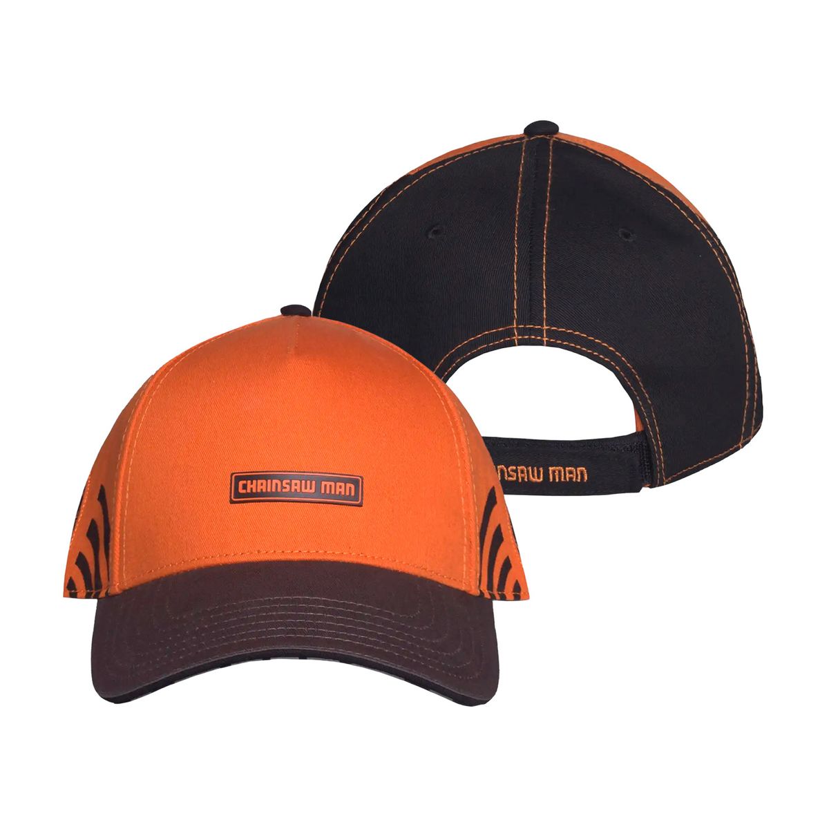 Tyylikäs, oranssi Chainsaw Man -lippalakki, jossa on sarjan logo. Chainsaw Man -sarjan viralliset fanituotteet animefaneille - niin lippikset, paidat kuin pehmolelut - löytyvät yvolve.fi-verkkokaupasta.