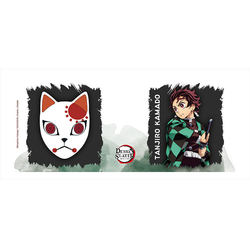 Valkoinen Demon Slayer -muki, jossa Tanjiro ja hänen naamionsa.
