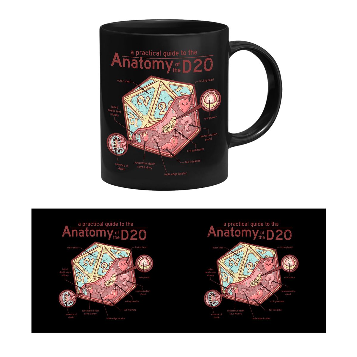 GlassStaff-muki, jossa on kuva D20-nopan anatomiasta. Dungeons & Dragonsin inspiroimat GlassStaff-mukit löydät yvolven valikoimasta.