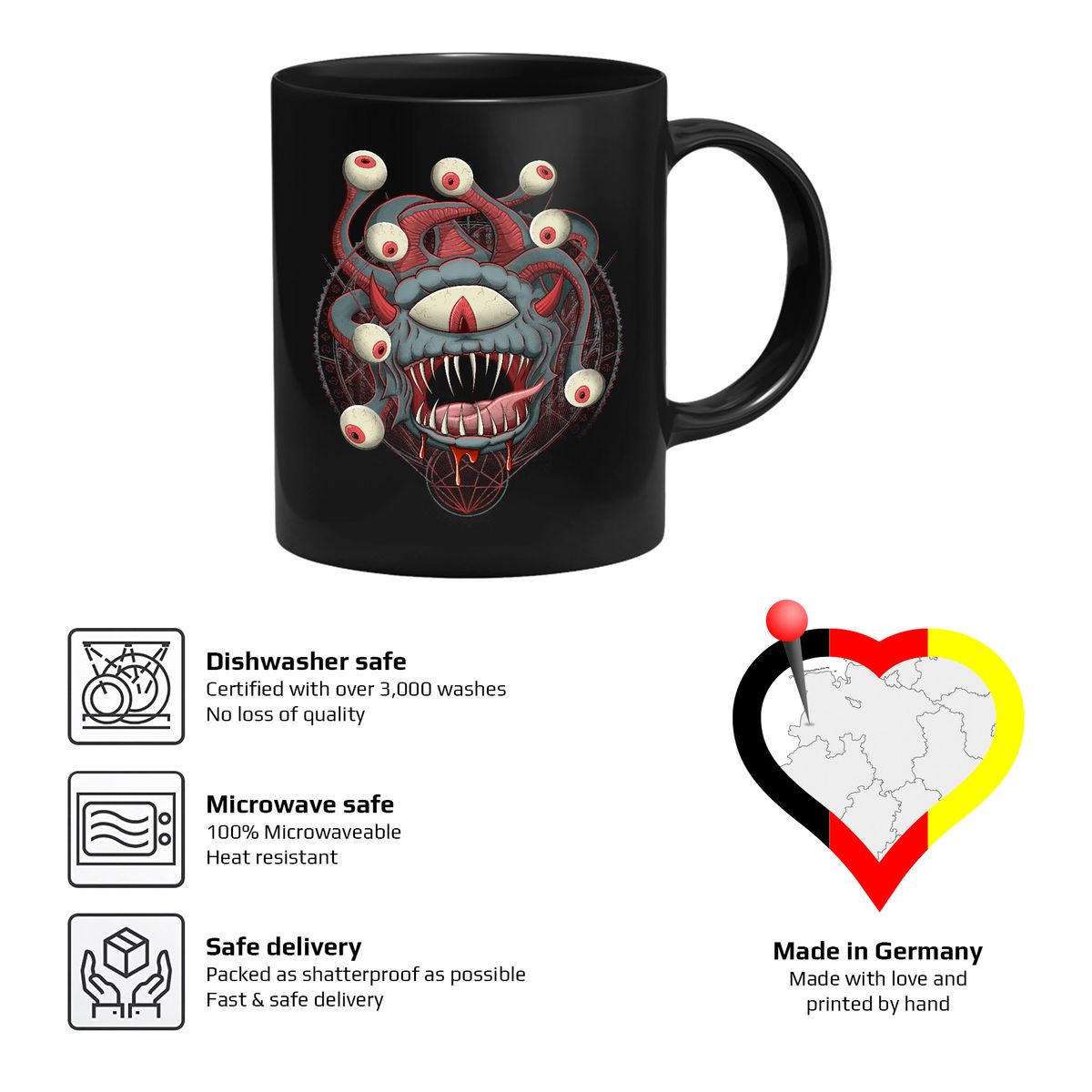 GlassStaff-muki, jonka kuvassa on beholder-hahmo. Dungeons & Dragonsin inspiroimat GlassStaff-mukit löydät yvolven valikoimasta.