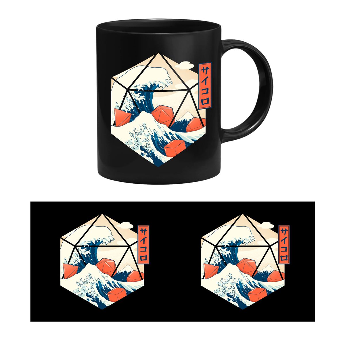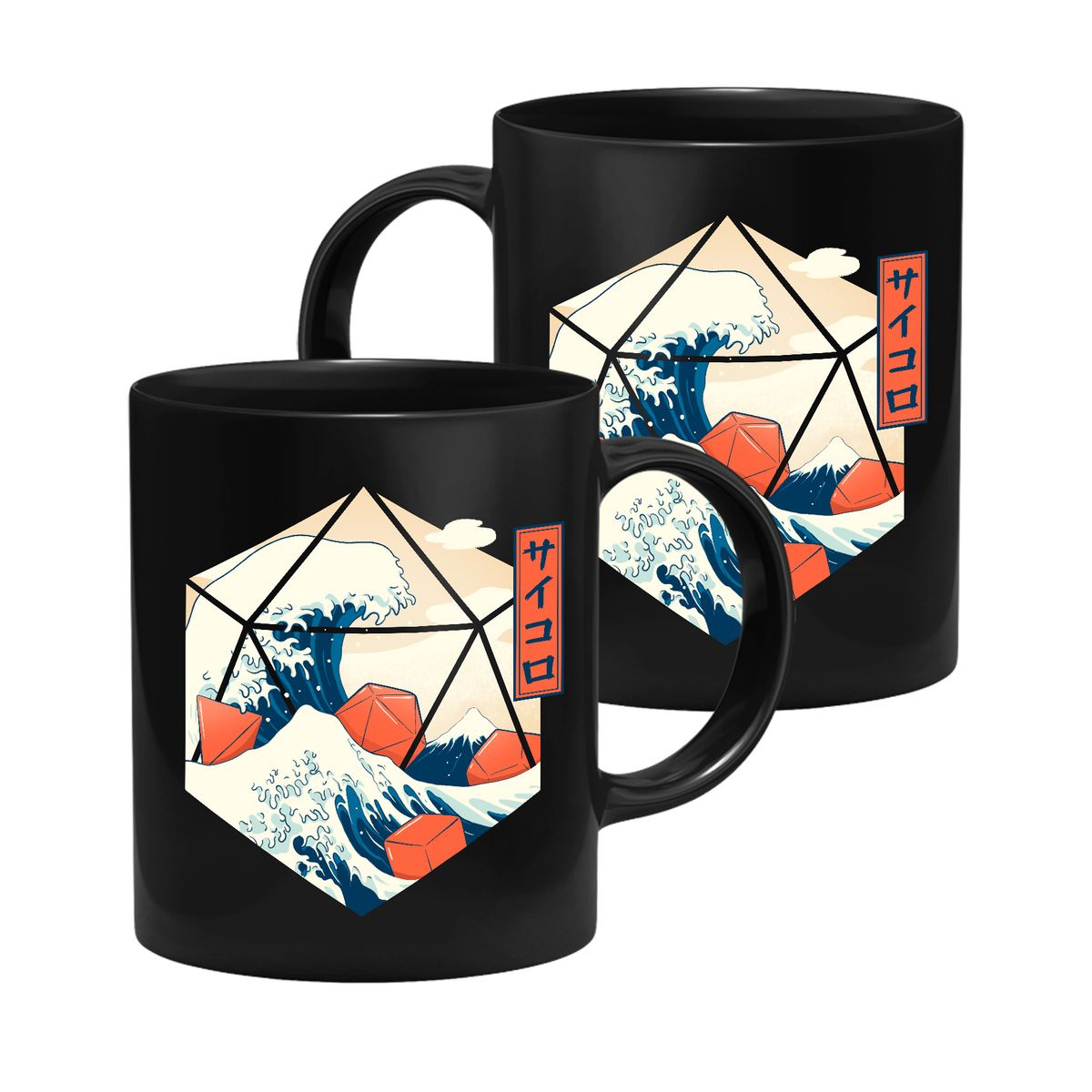 GlassStaff-muki, jonka kuvassa on aalto kuution/nopan kehyksessä. Dungeons & Dragonsin inspiroimat GlassStaff-mukit löydät yvolven valikoimasta.