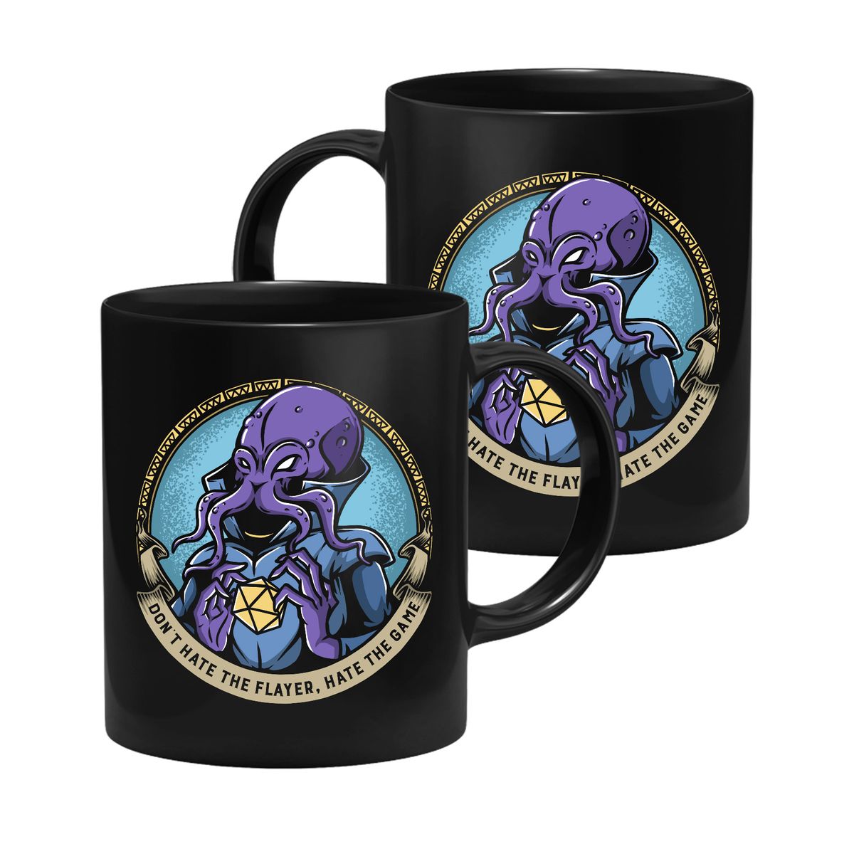 GlassStaff-muki, jossa on Mindflayer ja lause "Don't Hate The Flayer, Hate The Game". Dungeons & Dragonsin inspiroimat GlassStaff-mukit löydät yvolven valikoimasta.