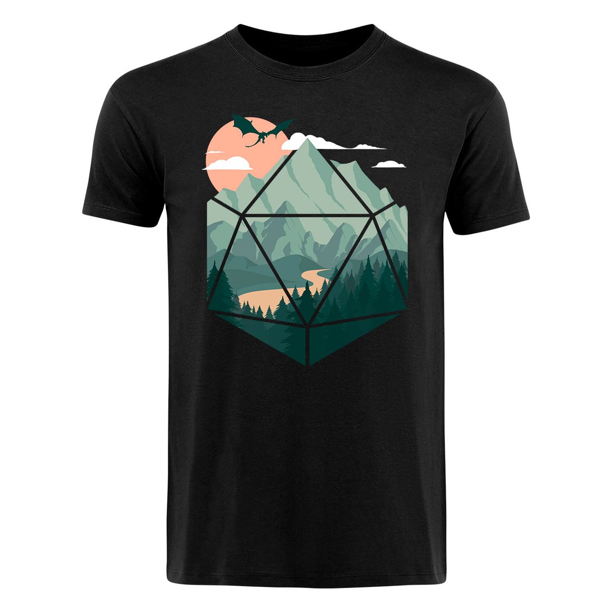 GlassStaff T-paita, jonka kuvassa on näyttävä maisema D20-nopan sisällä. Dungeons & Dragonsin inspiroimat GlassStaff-paidat löydät yvolven valikoimasta.