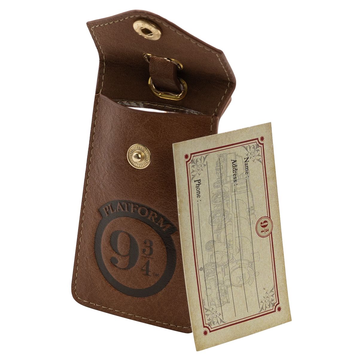 Harry Potter -osoitelapussa on laiturin 9 3/4 -symboli.