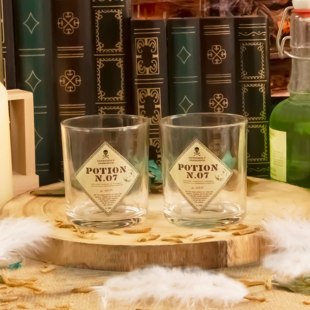 Harry Potter -juomalasisetti, johon kuuluu moniliemijuoman näköinen pullo ja kaksi lasia. Kaikki yvolven Harry Potter -tuotteet ovat 100% virallisia ja aitoja fanituotteita.