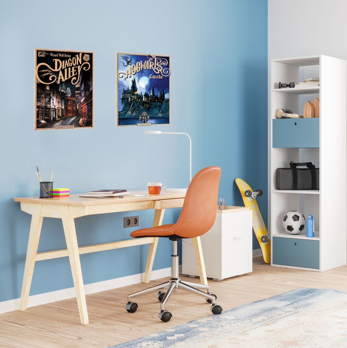 Laadukas Harry Potter -julistesetti, jossa toisessa kuvassa Viistokuja (Diagon Alley), toisessa kuvassa Tylypahkan linna.