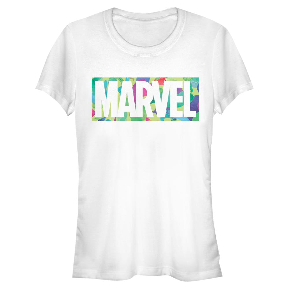 Naisten lyhythihainen valkoinen Marvel-paita, jossa Colorful Marvel-aiheinen painatus. Kaikki verkkokauppamme Marvel-naisten T-paidat ovat 100% aitoja fanitutotteita!