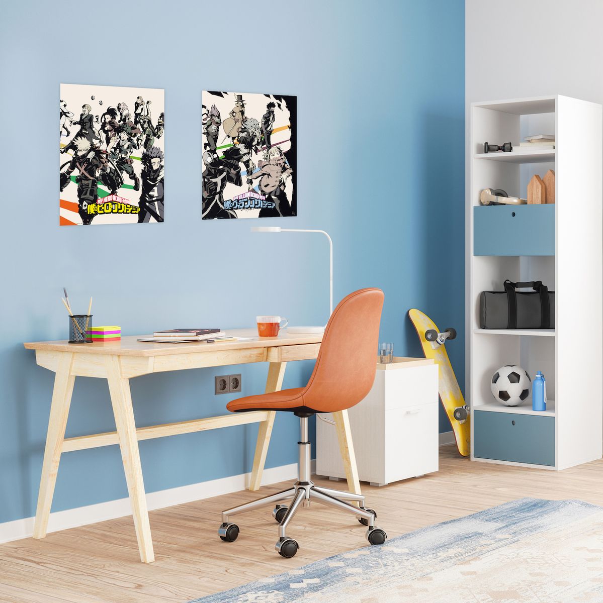 Tyylikkäät chibi-tyyliset My Hero Academia -julisteet, joiden kuvat esittävät anime-sarjan sankareita ja pahiksia. My Hero Academia -julistesetti sisältää kaksi julistetta. Täydellinen valinta koristamaan kaikkien anime-fanien seiniä.