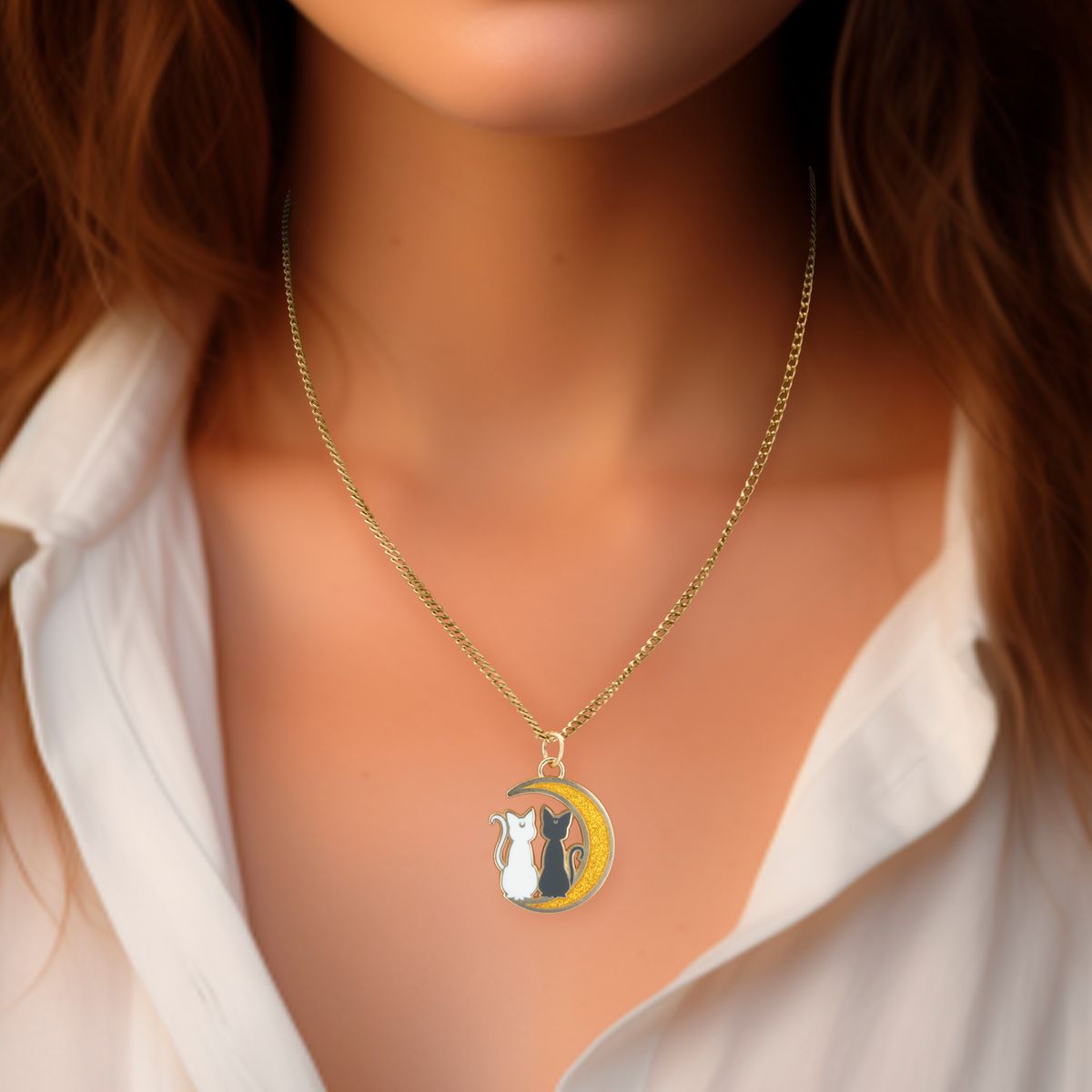 Laadukas Sailor Moon -kaulakoru, jossa Artemis ja Luna poseeraavat kuunsirpin reunalla.