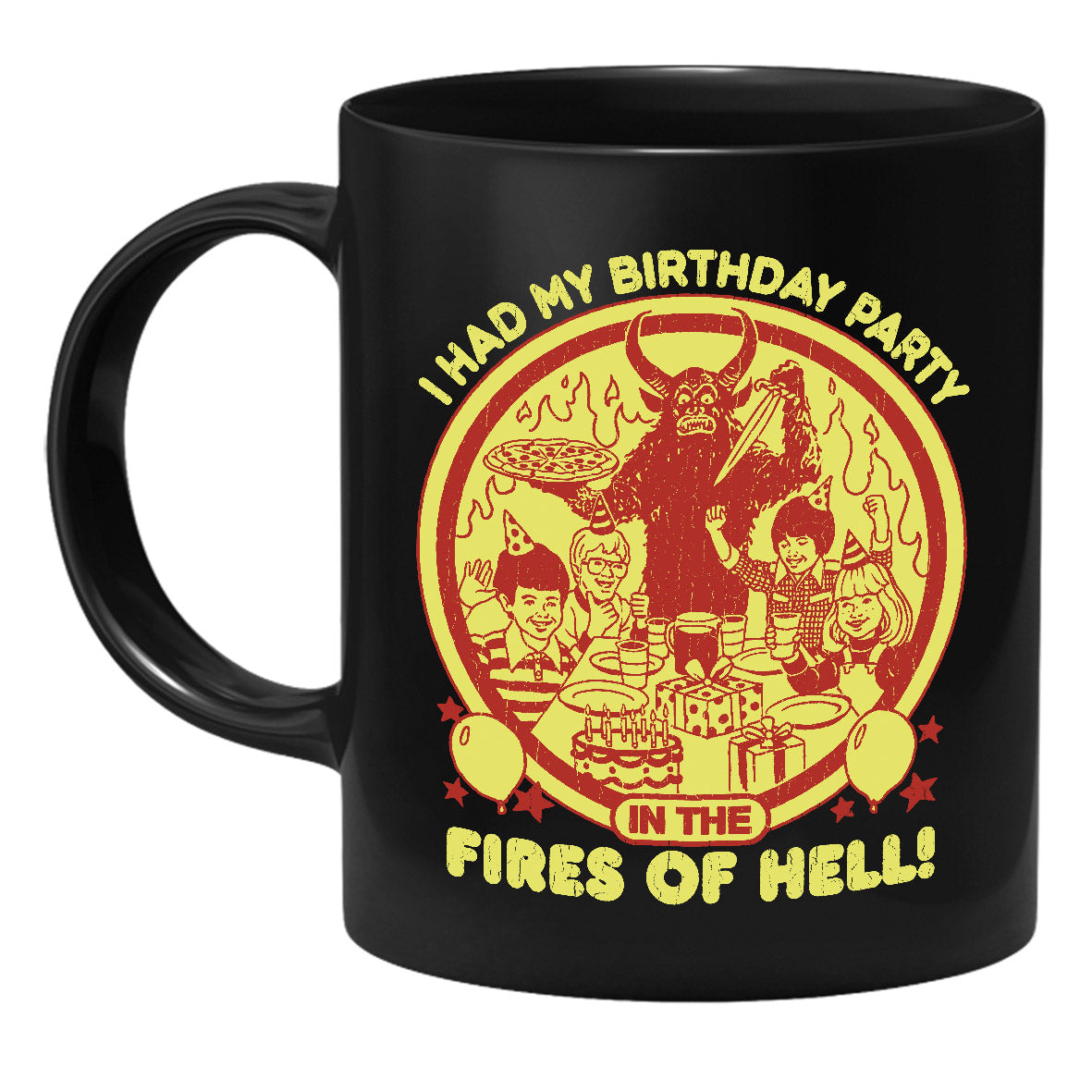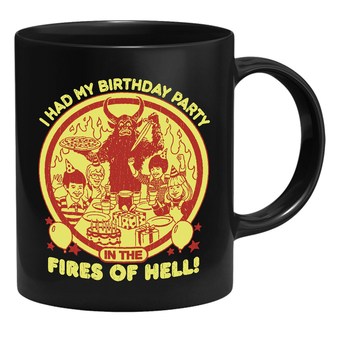 Steven Rhodes -muki, jonka kuvassa on lasten synttärikutsut joiden tarjoilijana toimii itse piru.