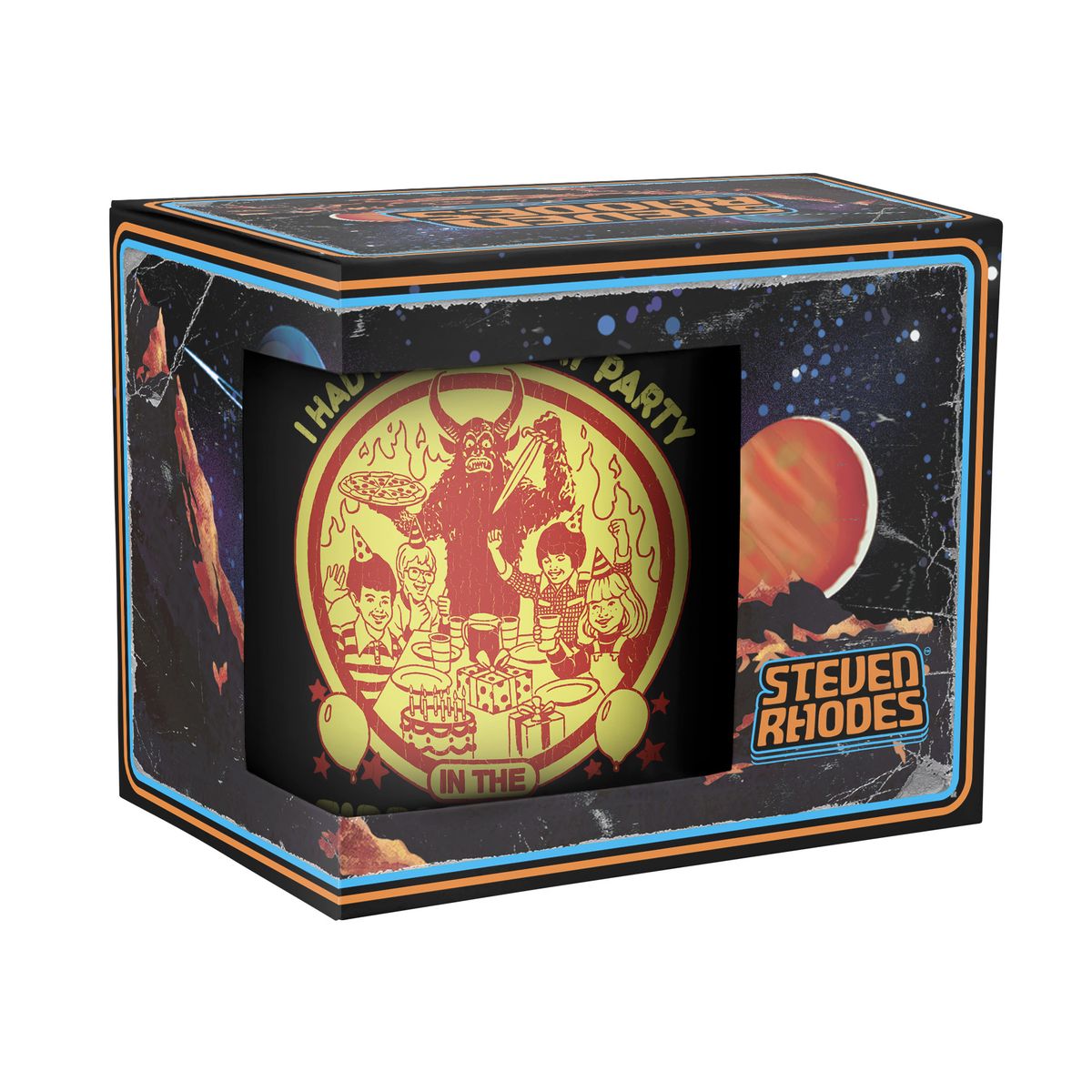 Steven Rhodes -mukit ovat nappivalinta nokkelan, mustan huumorin ystäville. Nostalgiset Steven Rhodes -designit ammentavat inspiraatiota varsinkin 50-luvun scifistä ja kauhusta, sekä 70- ja 80-luvun VHS-aikakaudelta sekä vanhoista lastenkirjoista.