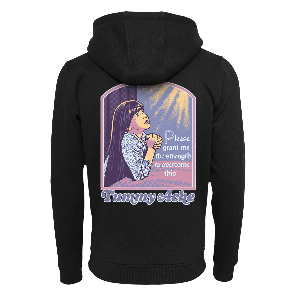 Steven Rhodes -vetoketjuhuppari, jonka kuvassa tyttö rukoilee säästyäkseen vatsakivuilta.