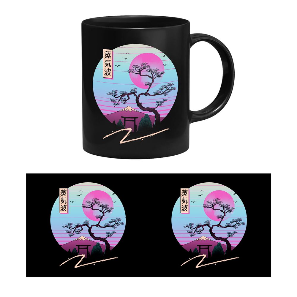 Vincent Trinidad -kahvimuki, jossa on molemmilla puolilla Zen Chillwave -aiheinen kuva.