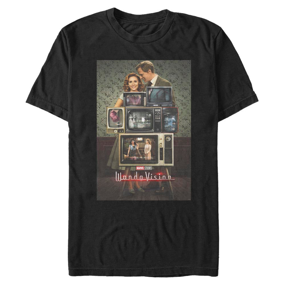 Lyhythihainen WandaVision-T-paita, jossa on WV Poster Through the Years -aiheinen kuva. Kaikki valikoimamme WandaVision-T-paidat ovat 100% aitoja fanituotteita.